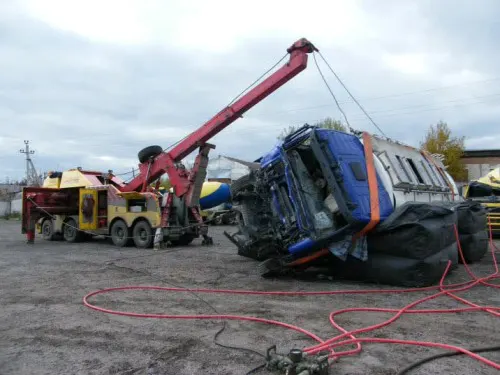 Основная цель использования пневмоподушек в грузовой эвакуации – увеличение размера зазора между поверхностью и транспортным средством, чтобы освободить пассажиров или груз. Кроме того, они поднимают грузовой автомобиль очень плавно, исключая дальнейшую деформацию и переворачивание транспортного средства. Данное свойство особенно важно для крупногабаритной техники.