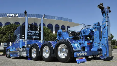 Ярким примером одного из самых мощных эвакуаторов для тяжелой техники является Freightliner FLD. Этот монстр имеет 4 оси, 3 из которых при необходимости могут быть ведущими. В отличии от мало- и среднетоннажных моделей, производящих погрузку пострадавших транспортных средств непосредственно на собственную специальную платформу, Freightliner FLD рассчитан на транспортировку ТС методом частичной погрузки (подъем за передние колеса, переднюю/заднюю ось).