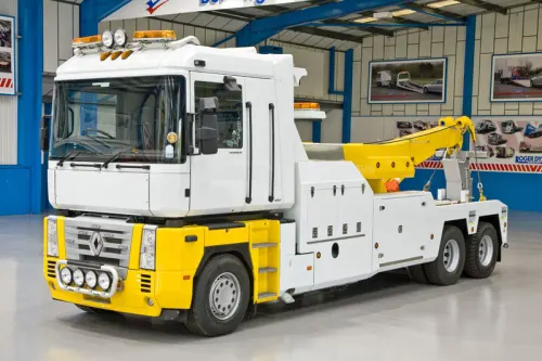 В качестве автомобилей-эвакуаторов используются Renault Magnum шасси с колесной формулой 6x2 и колесной базой пятнадцати вариантов – от 3920 мм до 6820 мм. Полная масса одиночных машин составляет 18–26 т, в составе автопоезда – до 44 т. Мощность двигателей 460 и 500 л.с. позволяет выполнять ответственные работы с тяжелой дорожной техники и грузовыми автомобилями.